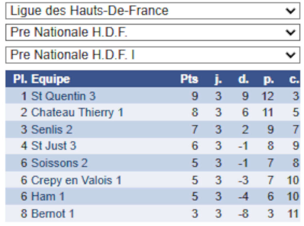 Championnat de France par équipes de club Pré-Nationale – Hauts de France – Groupe 1