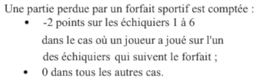 Pour ceux qui auront la curiosité d’aller voir sur le site de la FFE avec le lien indiqué après le classement général ci-dessous et qui consteront que Reims a un cumul de 9 points, voici l’extrait du règlement qui explique le retrait de deux points :